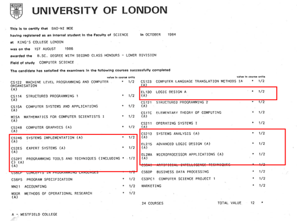 3-1、Bachelor of Science with Honours in Computer Science from King's College London, University of London.